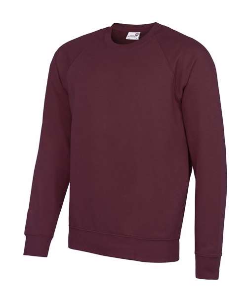 Crew neckline sweatshirt. Raglan sleeves. Ribbed neckline, cuffs and hemline. Soft cotton faced fabric creates ideal printing surface. Name label at back neck. Taped neck. Twin needle stitching for durability.