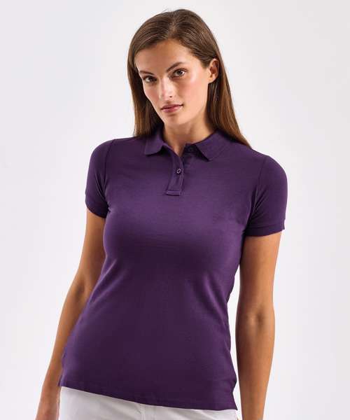 Classic fit polo for women, ribbed knit collar and sleeve cuffs. Twin needle stitching on hem. Two self coloured buttons on placket. Product contains no branded neck label. Removable Kimble or looped garment tags. Inner seam label holds important product information on one label with a second label containing brand information which can be cut-away. Please note old stock may contain a fixed branded label.