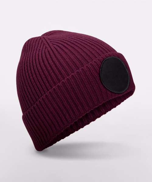 B332R: Circular fashion patch beanie
