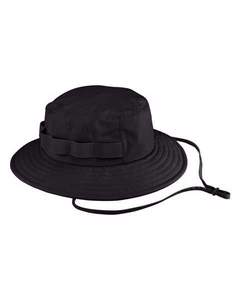 Contains 100% certified recycled nylon. Water-repellent fabric. Protection against sunlight: UPF50+. Mesh lining for extra comfort. Front panel for decoration. Stitched ventilation eyelets. Elasticated loops. Detachable chin strap with toggle adjuster. TearAway label for ease of rebranding.