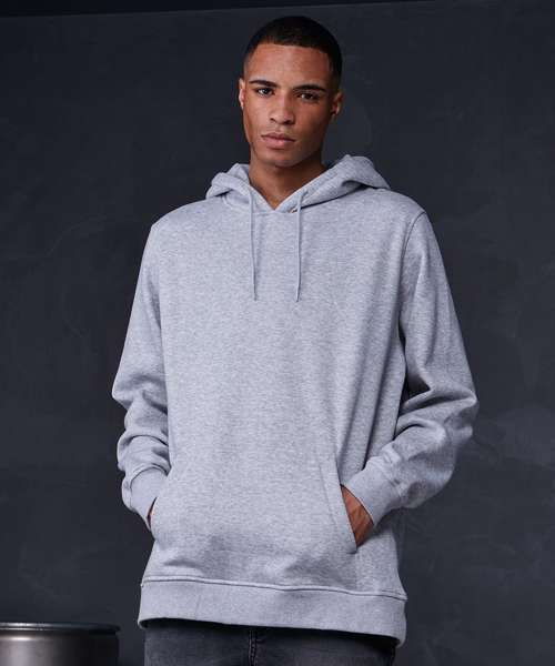 Comfortable hooded sweatshirt for men in hip oversized cut. Hood, kangaroo pocket and wide cuffs on sleeves and hem provide the necessary comfort. The hooded sweatshirt is perfectly suited to be refined and can be easily customised.