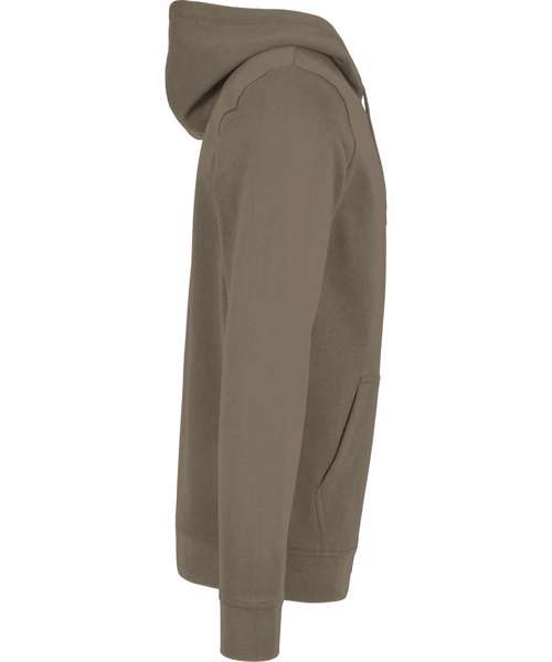 Inside brushed sweat fabric with neutral size label without branding, making neck print possible. Kangaroo pocket with pocket openings out of shell. Set-in sleeves, rib cuffs at the hem and sleeve opening. Neck half moon. Hood with two seams – herringbone neck tape. Hood lining out of shell.