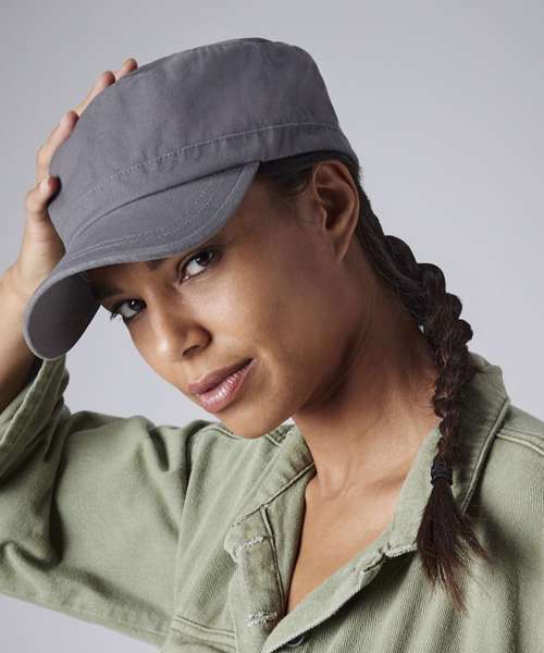 - Self-fabric strapSilver effect buckle and grommetPre-curved peak
