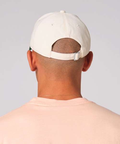 Contrast semi-curved peak. Soft, unstructured crown. Stitched ventilation eyelets. Low-profile, five-panel design. Self-fabric strap with tri-glide buckle. Tear-away label for ease of rebranding.