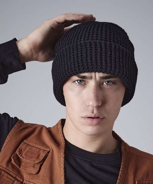 TearAway label for ease of rebranding Thick waffle knit. Double layer knit. Cuffed design for optimal decoration.
