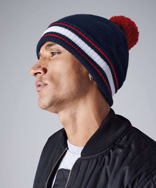 TearAway label for ease of rebranding. Cuffed design for optimal decoration. Contrasting pom pom and striped cuff. Double layer knit. Classic colour combinations. BSCI certified. Reach certified.