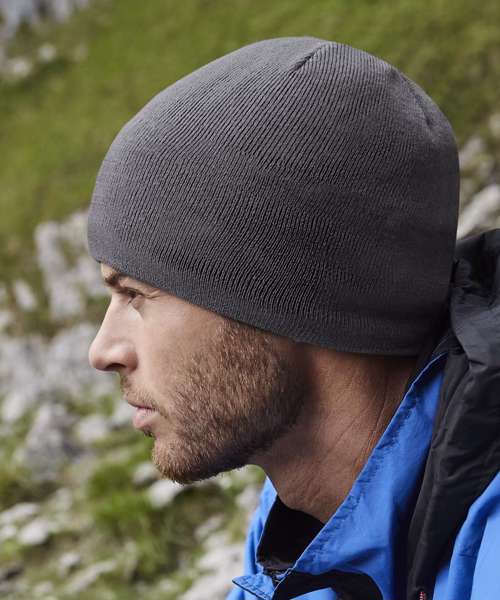No matter what the season, this streamlined pull-on beanie is an activewear accessory staple. Lined with a microfleece thermal headband, the BC501 is lightweight and breathable, thanks to a single-layer knit. Finished in a durable, water-repellent treatment, it also provides an extra layer of weather protection, repelling light rain and snow in outdoor pursuits.