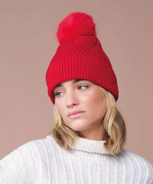 Sumptuous heavy ribbed knit. Soft-touch fabric. Retro styling. Luxury faux fur pom pom. Cuffed design for optimal decoration. TearAway label for easy rebranding.