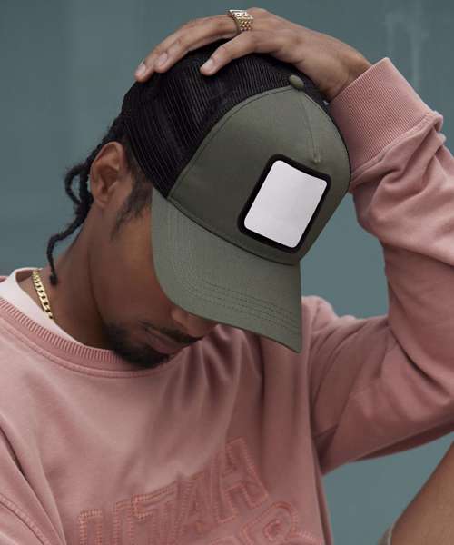 100% Cotton front panel and peak. 100% Recycled polyester mesh rear panels