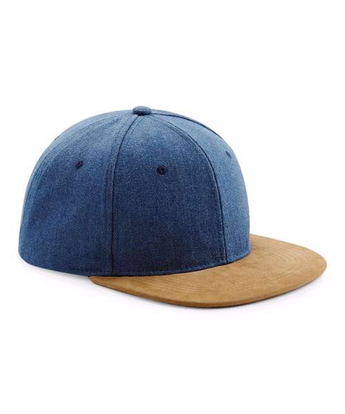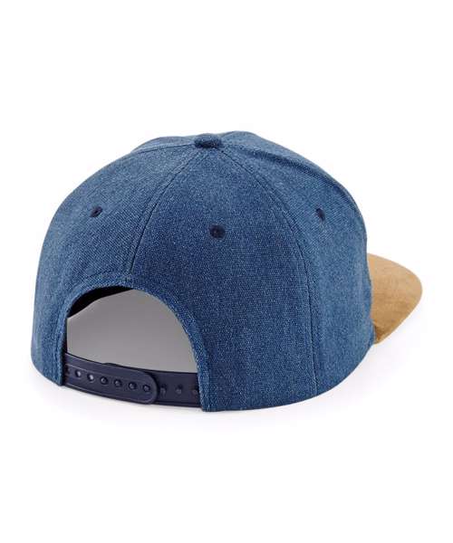 TearAway label for ease of rebranding. Faux suede flat peak. Retro style snapback size adjuster. Stitched ventilation eyelets. 6-panel design.