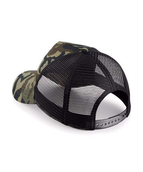 Tear away label for ease of rebranding. Retro style snapback size adjuster. Camouflage detailing. 5-panel design. Pre-curved peak.