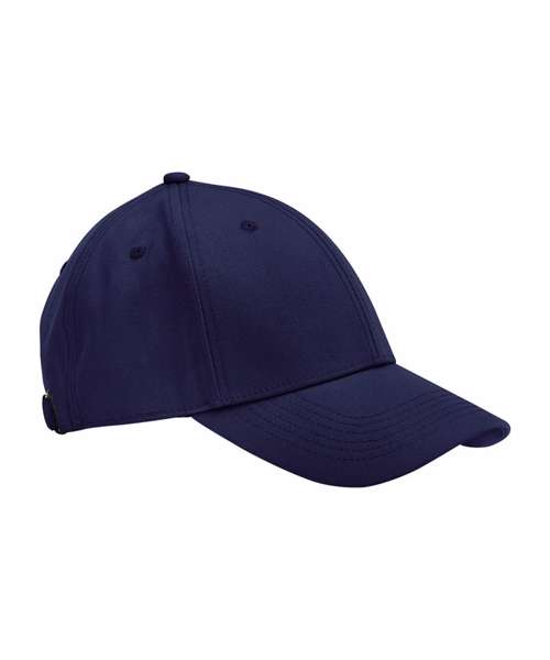 Contains 100% certified, organically grown cotton. 6-panel design. Structured front panels. Stitched ventilation eyelets. Self-fabric strap with gunmetal buckle. TearAway label for ease of rebranding.