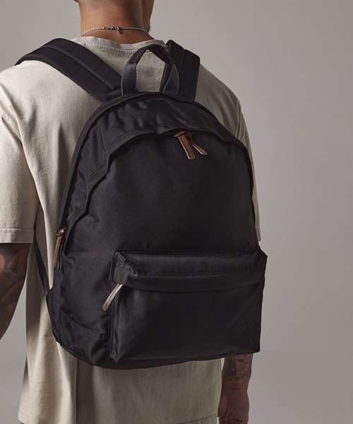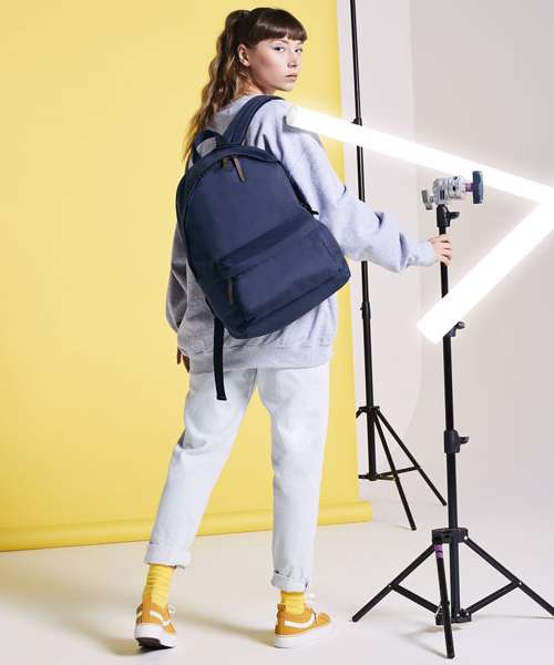 TearAway label for ease of rebranding. Heritage styling. Laptop compatible up to 15.6". External access padded laptop compartment. PU and metal accents. Zippered front pocket. Padded back panel. Padded adjustable mesh shoulder straps. Padded grab handle.