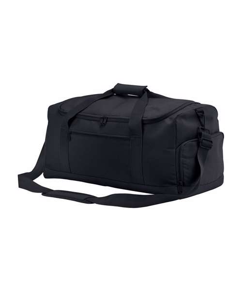 Contains 100% certified recycled polyester. PU coated base panel. Two-way zipped opening for easy access. Shoe tunnel. Zipped front pocket. External mesh pocket. Internal mesh pocket. Padded hand grip. Detachable, adjustable shoulder strap. TearAway label for ease of rebranding.