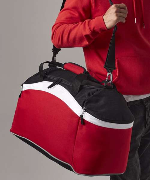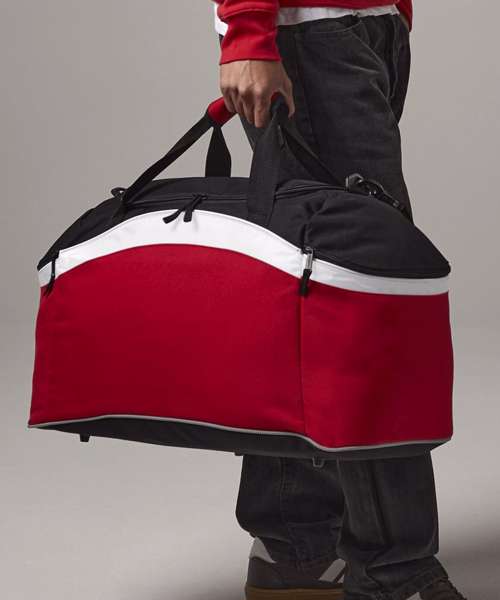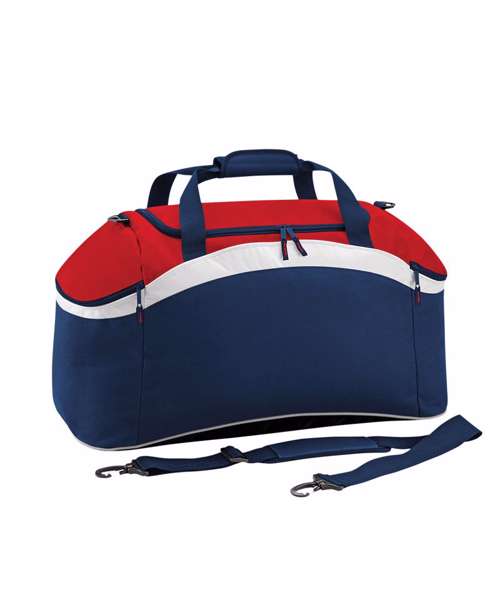 Large main compartment. Enhanced visibility reflective piping. Zippered end pockets. Padded hand grip. Detatchable adjustable shoulder strap with pad. Internal baseboard. Protective base feet.