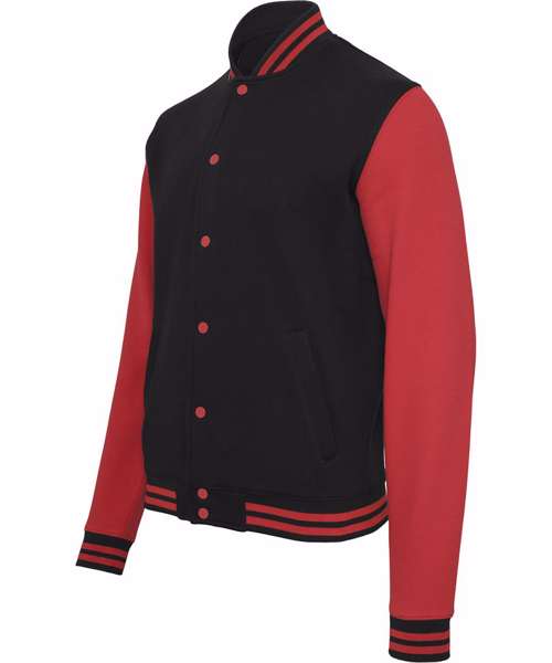 The college style presents itself as a cool stylish jacket with contrasted cuffs to offer a preppy look and feel. The inside brushed sweat fabric makes it comfortable to wear. Typical details such as striped rib cuffs at the collar, hem and sleeve and metal press-buttons emphasize the cool look. Two pockets on the front, set-in sleeves and neck half-moon with neck tape.