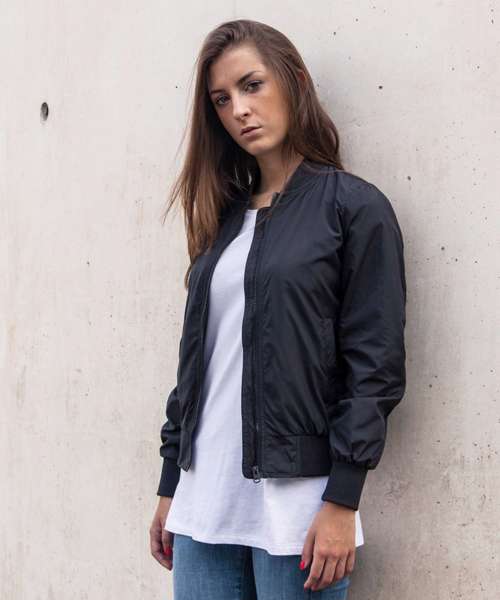 A true classic: The Women's bomber jacket has all the bomber details you've come to expect, such as a ribbed collar, lightweight lining and a matching metal zipper. This casual jacket reaches its full potential when embellished with personalised embroidery or printing. This item is manufactured in a FAMA Certified factory. FAMA stands for Facility and Merchandise Authorisation and is a high standard production certificate.
