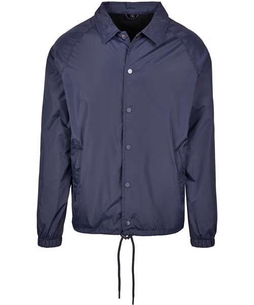 This sporty coach jacket pleases with a simple and functional design, which can be further enhanced through stitching, silk screening or flock printing. Its raglan cut with seamless shoulders in combination with the continuous press-button facing as well as the elastic cuffs turn this nice piece of garment into a real street wear style jacket. You will also get some handy side pockets and an elastic waistband with drawstring and stoppers at your disposal. The sophisticated design is rounded off by a simple yet elegant collar. The functional and robust upper is made of nylon, the lining out of cotton and taffeta.