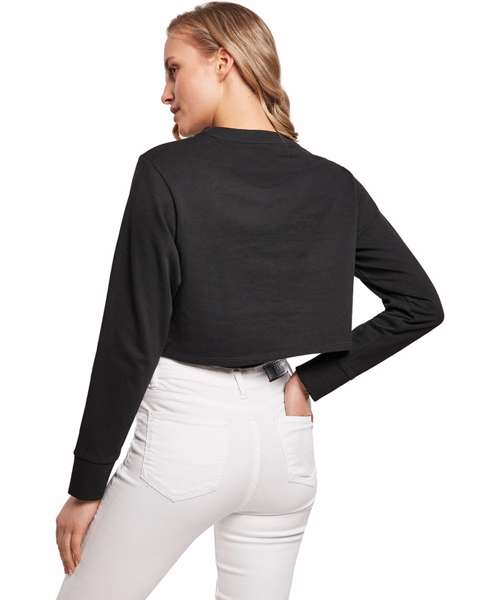 This casual crop top combines trendy urban street style with sportiness and comfort. Its wide cuffs, together with the comfy 100 percent cotton material offer best wearing properties. Those who like it even more individually can refine the crew shirt with embroidery or a screen or flex print.