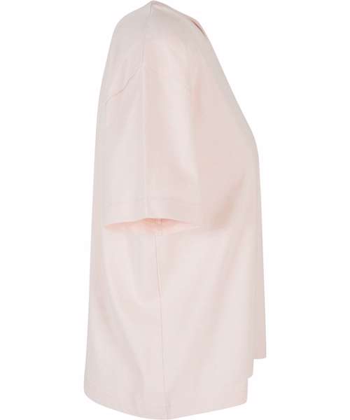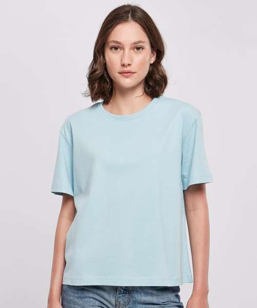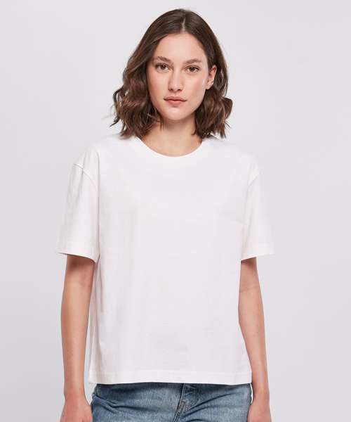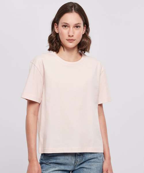 This short-sleeved, single-coloured women’s tee radiates a simple and calm style with a casual oversized cut and dropped shoulders. The cotton fabric ensures perfect comfort for the wearer, while the ribbed crew neck provides another style highlight. It’s suitable for further refinement with flock printing, screen printing or embroidery.
