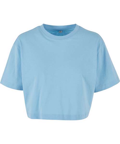 A sporty and summery women’s tee, with a slightly cropped cut, is enhanced by a casual oversized fit and short, wide sleeves – and a crew neck harmoniously rounds off the design. This top is made from a soft, reliable cotton fabric, which can further be refined with print motifs via screen or flex printing.