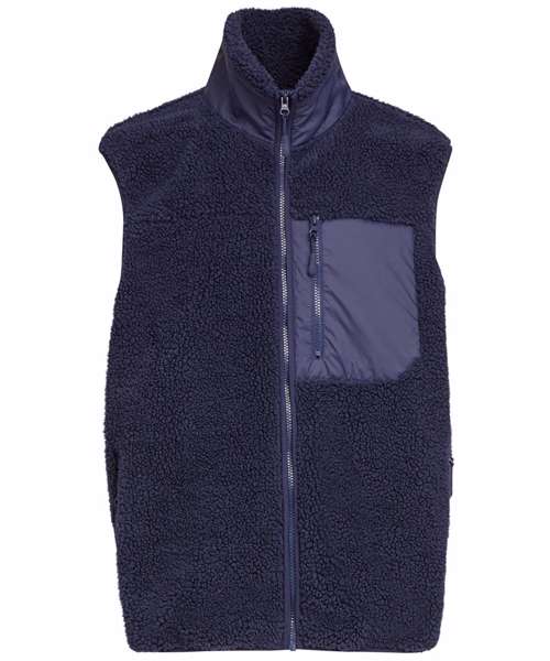 Cosy sherpa shell fabric. Warm internal fleece material. Unisex design. Functional zipped pockets. Stand-up collar. Nylon chest pocket. 30°C. Easycare.
