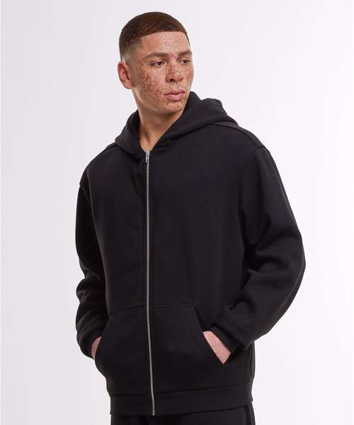 Loose fit. Dropped shoulders. Full metal-zip. Customisable split kangaroo pocket. Hood. Ribbed cuffs and hem. Half-moon at the neck.