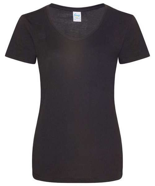 Relaxed fit T with curved bottom hem. Self-fabric soft V neckline. Self- fabric taped back neck. Longer body length. Set in sleeve. Twin needle stitching detail. Lightweight fabric. Easy tear out back neck label makes it perfect for rebranding. WRAP certified. BSCI certified. Oeko-Tex certified. SEDEX certified.