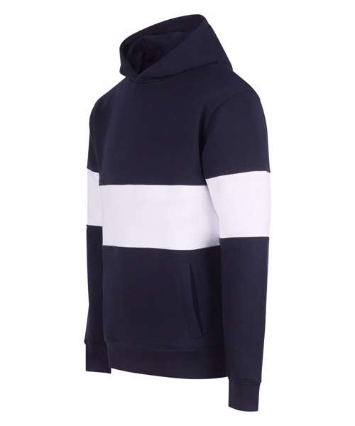 Slightly oversized fit. Heavyweight brushed back fleece. Made with recycled polyester. Panelled area across torso and sleeve in contrasting colour. Ribbed sleeve cuff and hem. Two side welt pockets with an inner kangaroo pocket. Two-piece hood. Single Jersey lining. Tag-free for easy rebranding.