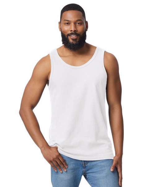 You know how you love those broken-in sneakers? The jeans you forget you’re wearing. That’s the exact sense you’ll get from this ringspun adult tank top. The trim Euro fit cut feels like it’s made expressly for you. Ultra-soft cotton yarns are ringspun for a smooth-on-skin sensation, and the fabric is pre-shrunk to keep the flattering shape.