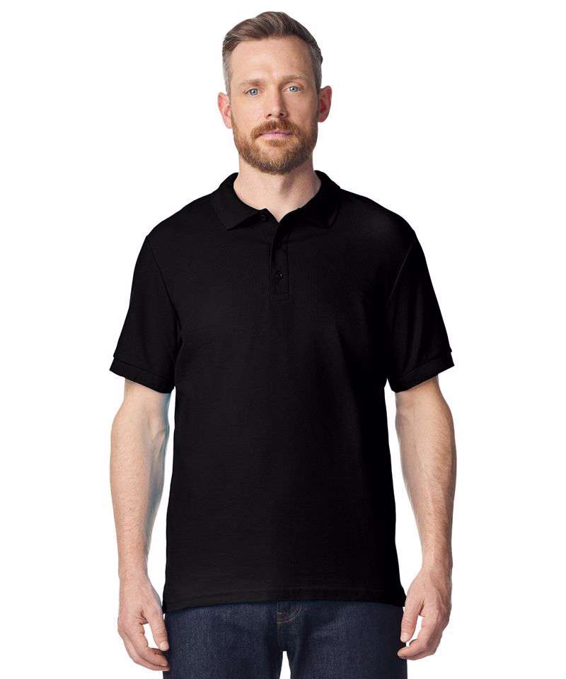 Combed Ringspun cotton double piqué knit. Side seamed with side vents. Contoured welt collar and cuffs. Tearaway label. Rolled forward topstitched shoulder. Clean finished placket with reinforced bottom box. 3 colour-matched buttons. Twin needle bottom hem.