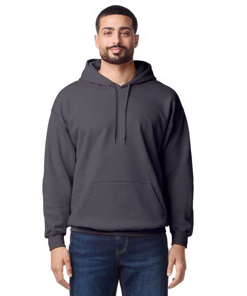 Made with our soft ringspun cotton blend, the Softstyle™ midweight fleece adult hoodie features a cosy, brushed interior with a 100% cotton face, ideal for DTG printing.Two-end ringspun cotton face fleece. Two-piece, colour-matched, Jersey fabric-lined hood. Dropped shoulder. Pouch pocket. 1x1 rib with Spandex cuffs and bottom band for enhanced stretch and recovery. Classic fit, tubular body. High-performing black tear-away label.