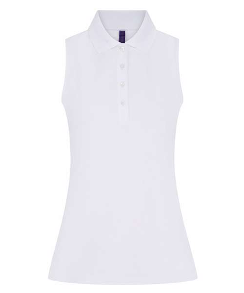 Women’s sleeveless Coolplus® polo shirt, made from best-selling Coolplus® micro-piqué fabric. Sleeveless polo shirt style. Regular fit. Ribbed collar and armhole. Slimline front placket with four dyed-to-match pearlised buttons. Henbury cut-out label. Coordinates with the Coolplus® range.