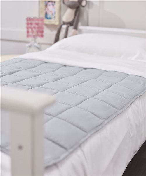 This kids weighted blanket works much the same way tight swaddling helps newborns feel snug and secure, so they can doze off to sleep more quickly. The blanket simulates a comforting hug, which may help calm and settle the nervous system, providing a more relaxed, deeper sleep. This blanket is not recommended for children under 20 kg.