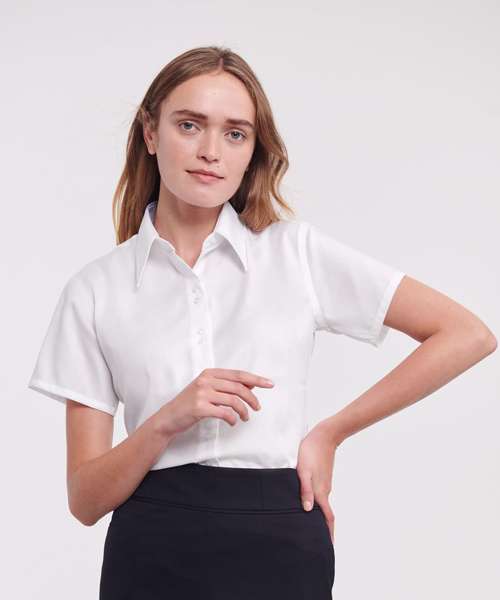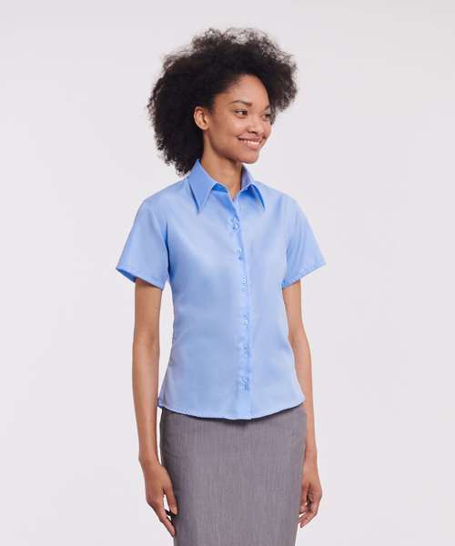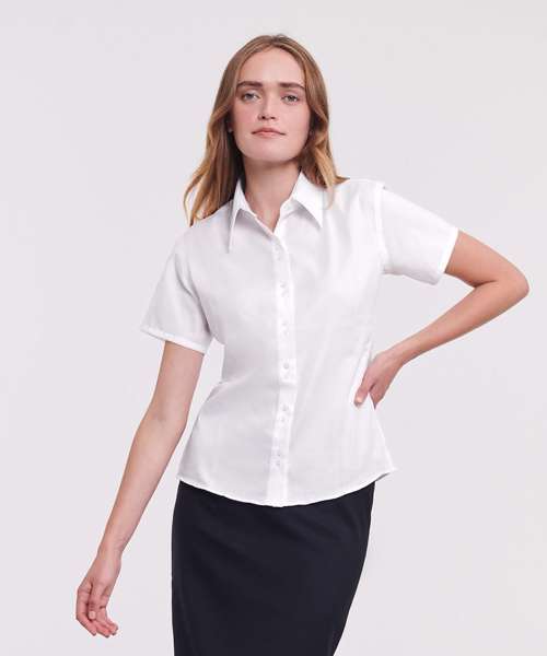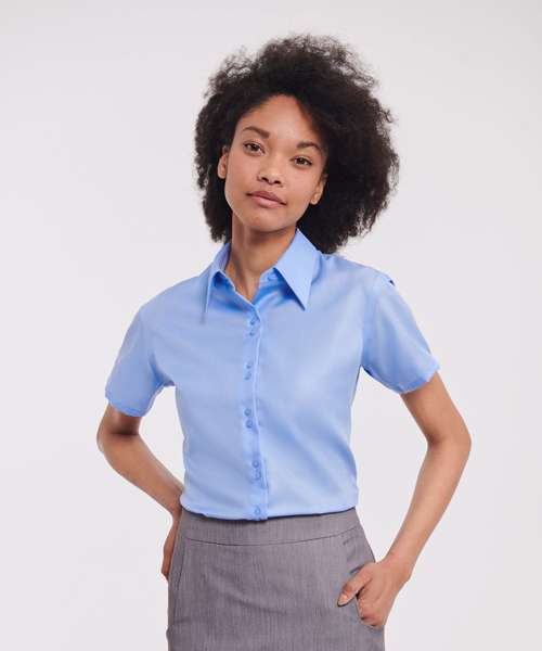Made using the newest technologies of non-iron fabric that stays wrinkle free and keeps the wearer looking and feeling smart all day long. Contemporary fit combined with contemporary design features. Stylish and relaxed long edged collar. Fashionable twin button fastening. Shaping at the waist for flattering feminine silhouette. Rounded hem.