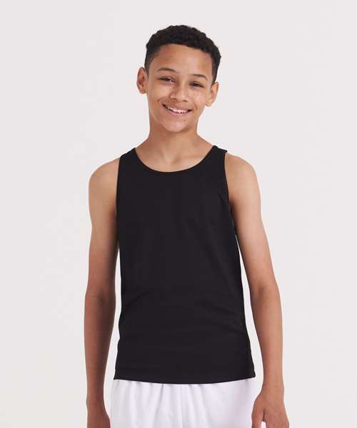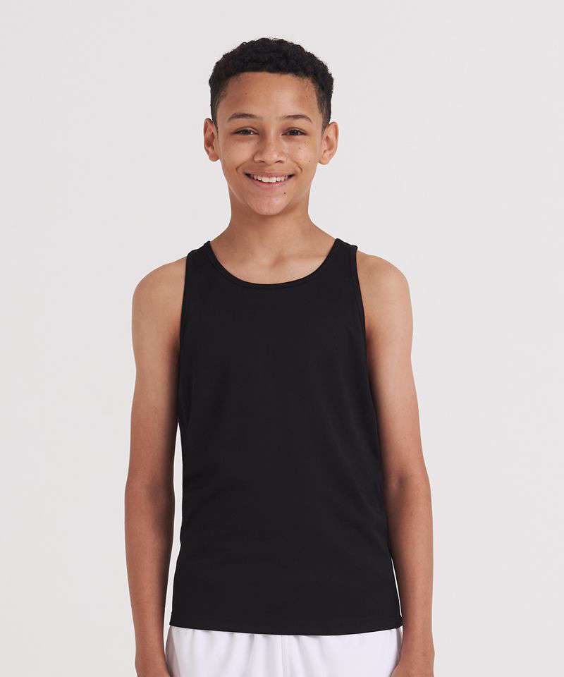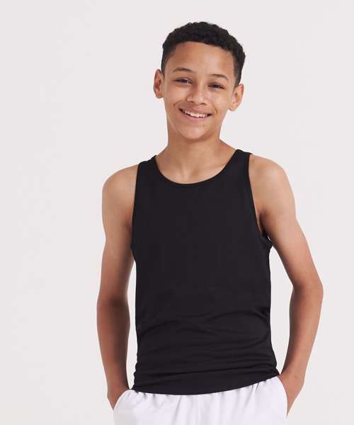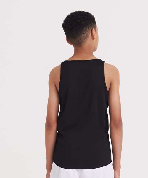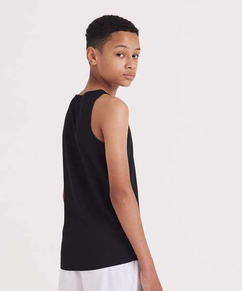 Sporty fit and bold in colour, the Kids cool vest is a gym kit essential. This vest has a sporty fit with a curved back hem for additional comfort and self-fabric binding around the neckline and armholes. Made from a lightweight Neoteric™ fabric to wick sweat away from the skin, it’s the perfect vest for school sports.