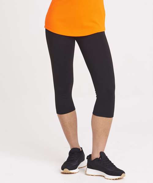 Contrast flatlock stitching on contrast colours. AWDis’ own CoolFit blended fabric containing elastane that provides stretch for comfort and a great fit, Elasticated smooth waistband. Hidden inner front key pocket. Flat seams for less irritation. Slimline ¾ length. Simple tear off label makes it perfect for rebranding, UPF 30+ UV protection.