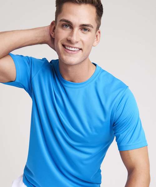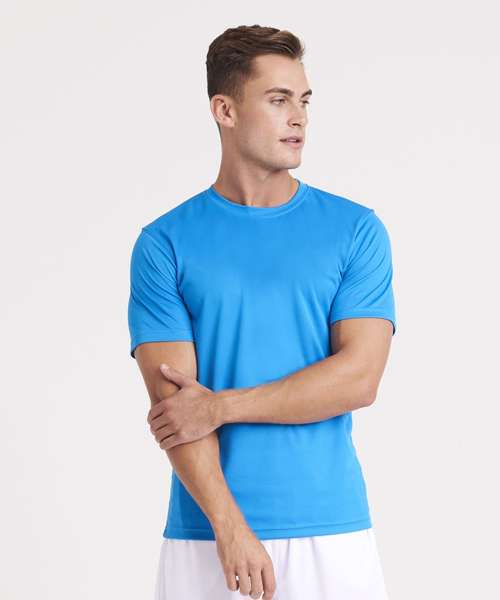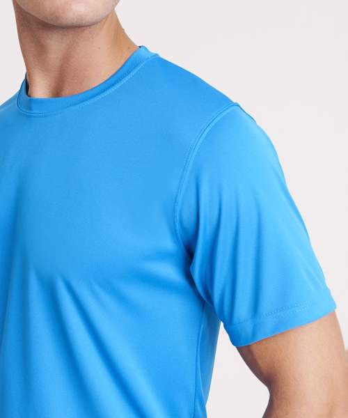 Relaxed sports fit. Set-in sleeve design. AWDis’s own Neoteric recycled fabric with inherent wickability and quick-drying properties. Self-fabric taped back neck. Twin-needle stitching detail. Self-fabric crew neck.