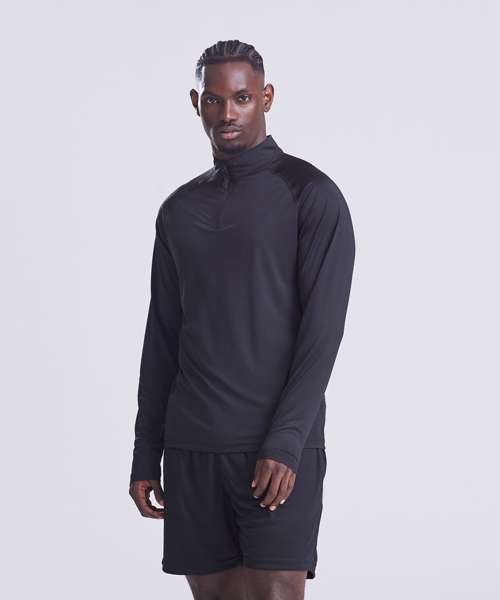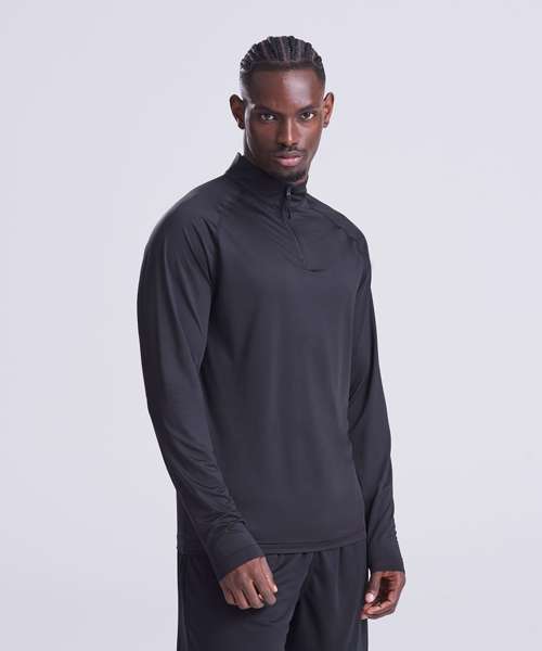 Raglan sleeves. Performance fabric. YKK 1/4-zip. Standard fit. Tear-away label. Quick-dry wicking fabric. Contains recycled polyester.
