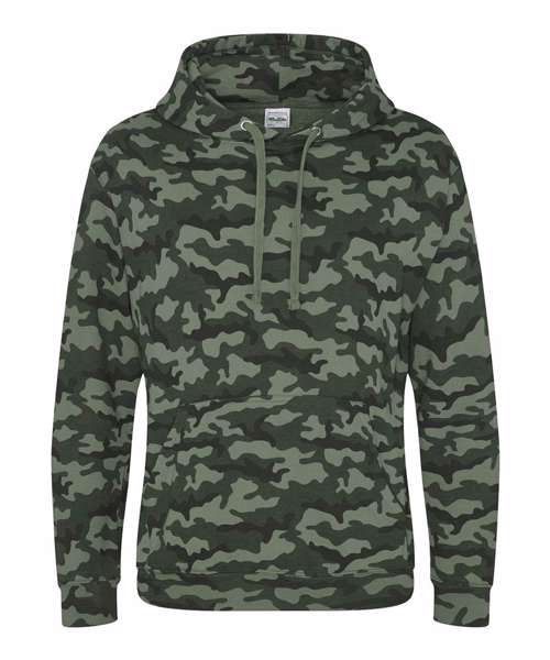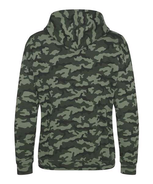 Twin-needle stitching detail. Classic all over camo print. Flat lace drawcords. Double fabric hood. Kangaroo pouch pocket. Ribbed cuffs and hem. Soft cotton faced fabric creates ideal printing surface. Simple tear-out label makes it perfect for rebranding. Flat lace drawcords. Brushed inner fleece.