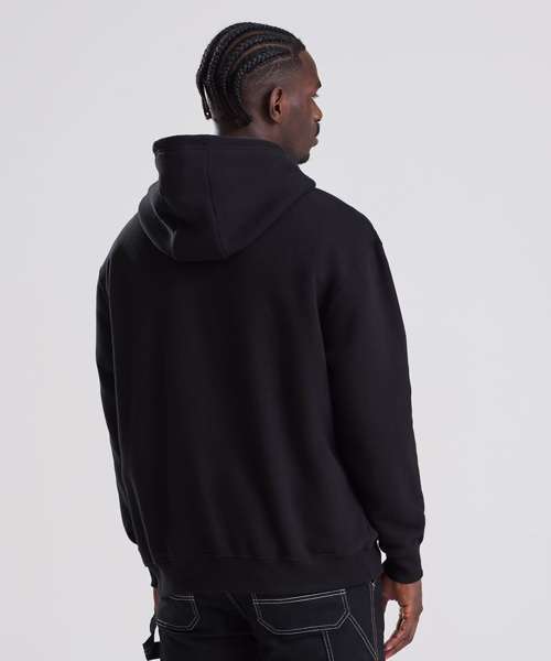 Relaxed fit. Heavyweight three-end fleece fabric. Three-panel self-fabric hood. No drawcords. YKK silver zip. Ribbed cuffs and hem. Locker patch. Brushed inner fleece. Twin-needle stitching detail. 100% cotton-faced fabric. Size label only.