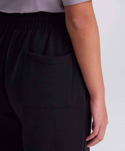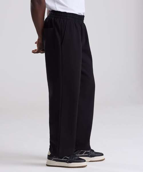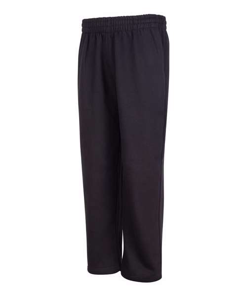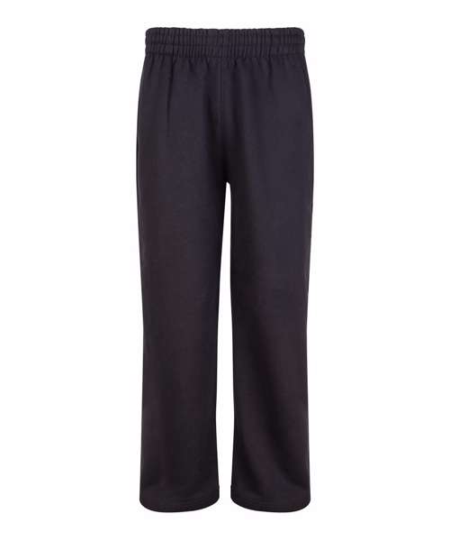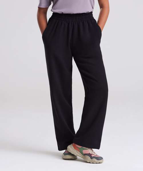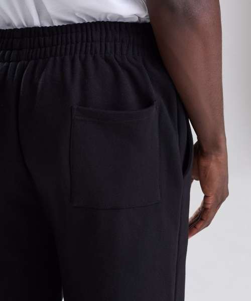 Oversized straight leg. Open hem. Thick elasticated waistband. Inner drawcord. Brushed inner fleece. Side pockets. Back patch pocket. Tear-away label. 100% cotton-faced fabric.