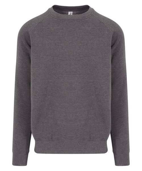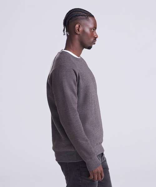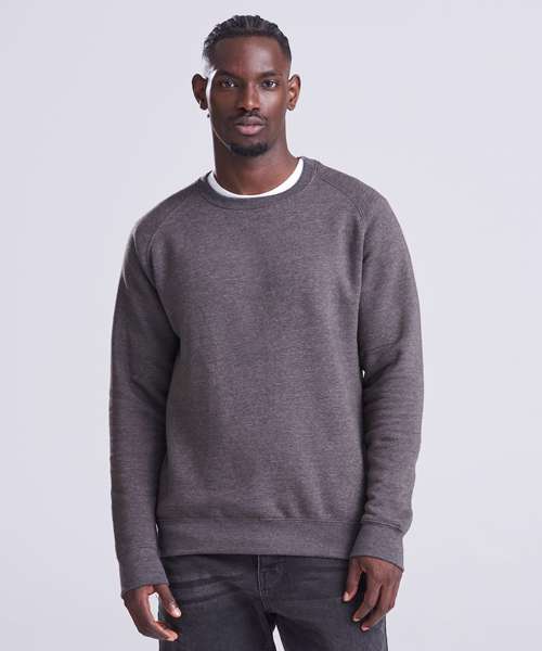 Heavyweight sweat. Twin-needle stitching detail. Raglan sleeves. 2 x 1 ribbed cuffs and hem. Soft cotton faced fabric creates ideal printing surface. Simple tear-out label makes it perfect for rebranding. Brushed inner fleece.