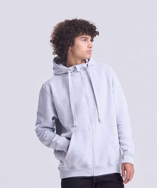 Heavyweight full zipped hoodie. Twin-needle stitching detail. Three panel hood with single Jersey inner. Flat lace drawcords. Split kangaroo pouch pocket. 2 x 1 ribbed cuffs and hem. Plastic zipper and puller with chin protector. Flat lock stitching detail on pocket. Soft cotton faced fabric creates ideal printing surface. Simple tear out label makes it perfect for rebranding. Worldwide Responsible Accredited Production (WRAP) certified production. Brushed inner fleece.
