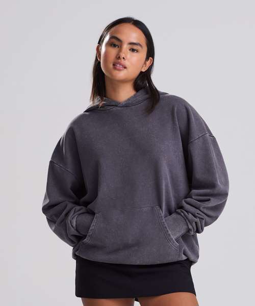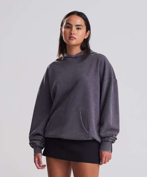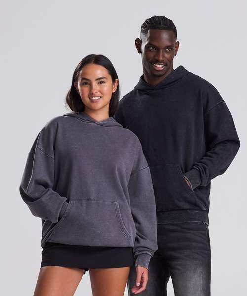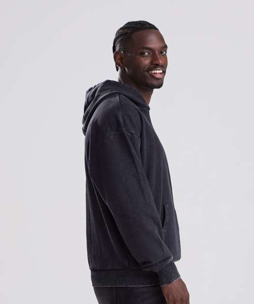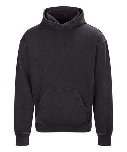 The Vintage washed hoodie combines an oversized fit with a washed finish for a street-ready look. Details include a double-layer hood, kangaroo pouch pocket and a French terry inner for everyday wear. Designed without drawcords for a clean silhouette, it features ribbed cuffs and hem, plus a locker patch and size label only – perfect for easy rebranding. Made with cotton and recycled polyester.