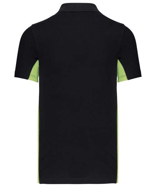 65% polyester/35% cotton. Piqué knit. Ribbed collar. 3-button matching placket. Contrast panels down arm and sides. Self-fabric cuffs. Certified STANDARD 100 by OEKO-TEX® N° CQ 1007/7, IFTH.