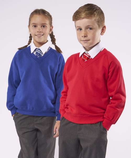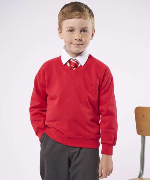 This v-neck sweatshirt ticks all the boxes where kids are concerned. Easycare with Coloursure™ for consistent colour wash after wash, great for everyday school wear or after school activities. Designed to withstand the rough and tumble of school life and still look good at home time.