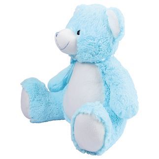 Soft plush bear. Contrast cream nose, front panel, and paws. Sewn nose and eyes. Matching ribbon and bow. Zip access on the base of the bear for direct access onto the tummy for decoration. Removable inner stuffing. Can be embroidered or sublimation printed. Complies with EN71 European Toy Safety regulations. Remove all hang tags and their fasteners before giving these items to a child. Suitable for children of all ages.