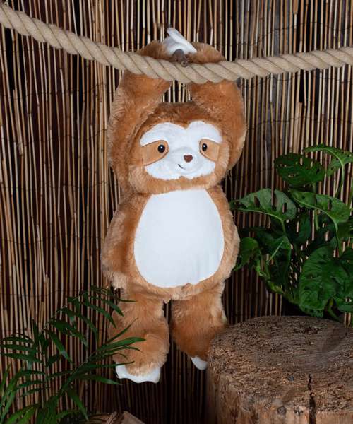 The slow mover. Hang out with the Mumbles Zippie Sloth, with hook and loop fastening on the paws as well as cute contrast face, hands and feet. Perfect for decorating, the tummy is made in a flatter pile for easy embroidery or print.