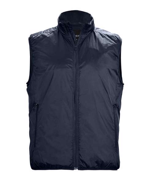 Shell and lining from recycled nylon. Lightweight. Elasticated band finish at hem and armholes. Side pockets with zip. Inner pocket with zip. Water-repellent. Recycled nylon. BIONIC FINISH® ECO – impregnation. Sorona® Aura – Eco-efficient performance fibre. Global Recycled Standard (GRS Certified, CU1038206).